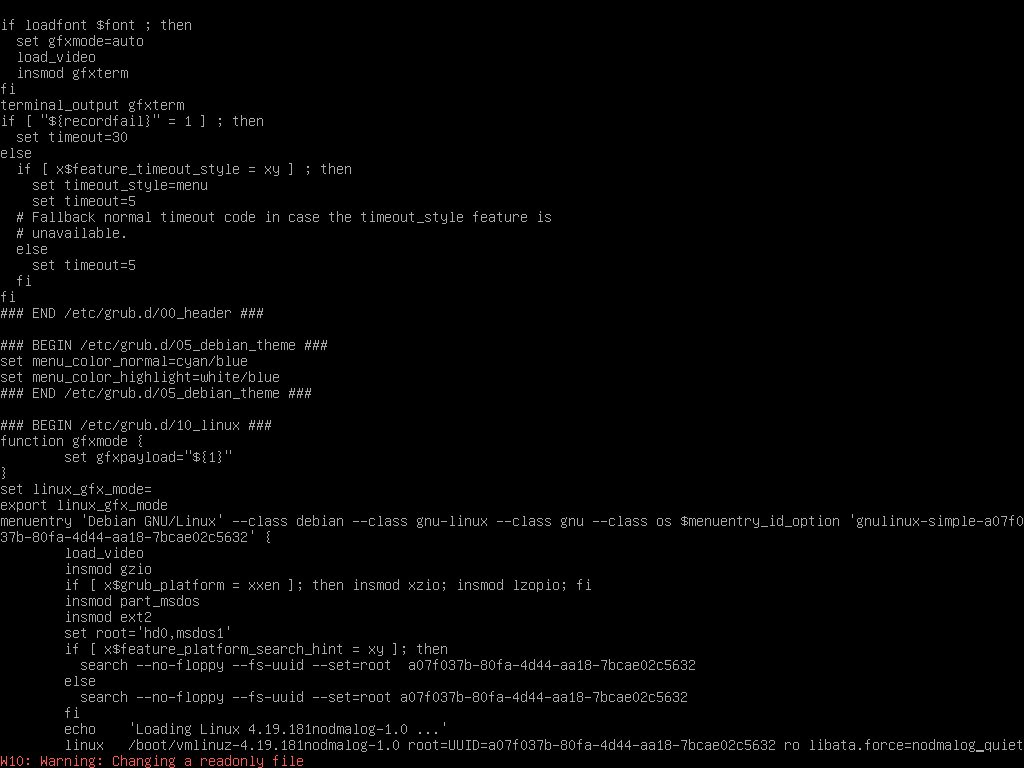 $ sudo cp ~/linux-4.19.181/arch/x86/boot/bzImage /mnt/vmlinuz